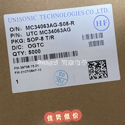 | MC34063AG-S08-R | UTC/友顺 | SOIC-8 | 2021 | 250000 | 2025-10-10 |